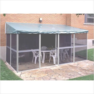 E150813 Structure Color: Sand, Roof Color: Taupe Features: -Easy to assemble screen enclosure which attaches to any exterior wall, trailer or R.V. -Heavy duty Aluminum with baked enamel finish which is 100pct rust proof. -Screen is made of fiberglass. -Roof material is a 3 ply vinyl, styled with scallops, assures sun blocking and is mildew resistant. -Dimensions: 74'' 96'' H x 181'' W x 90'' D.